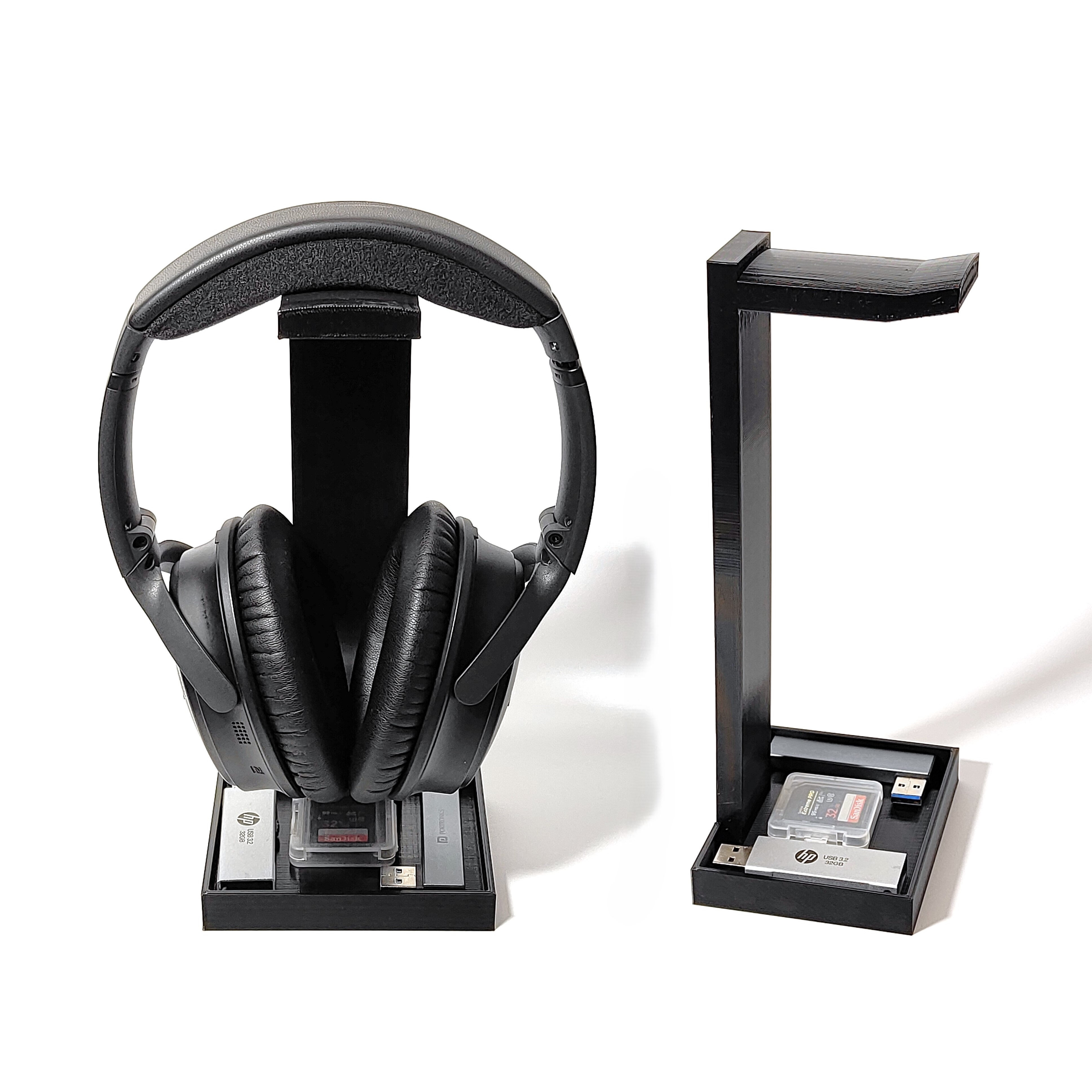 Desktop Stand for Headphones/Headsets with Built-in Accessories Tray | Sleek Black Desktop Organizer for Home, Office, or Gaming Setup